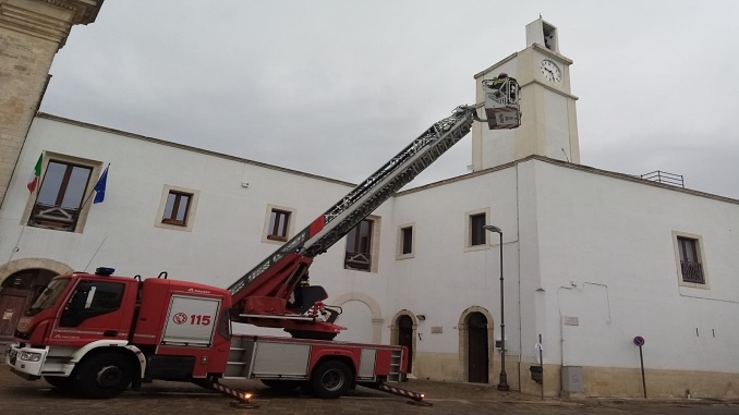 In queste ore, grazie alla collaborazione dei Vigili del Fuoco con i loro mezzi, della Polizia Locale , il posizionamento dell’opera, poi l’accensione allietata dalla banda “Santa Cecilia “ e lo spettacolo dei piccoli cantori del “Locomotive lab”