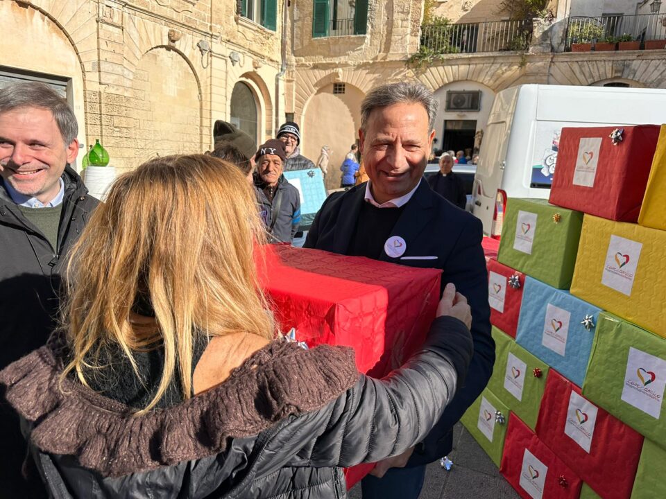 LECCE – All’ombra del Duomo di Lecce sono stati benedetti dall’arcivescovo mons. Seccia i pacchi pieni di generi alimentari che Cuore Amico ha poi donato alle famiglie più bisognose della diocesi in vista delle festività natalizie. “Nessuno deve rimanere indietro”, questo lo slogan del presidente Paolo Pagliaro.