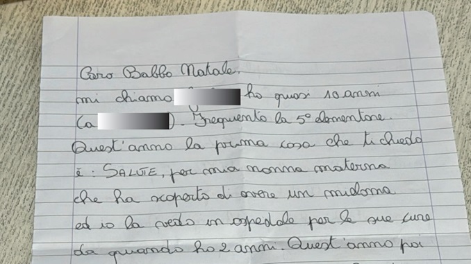 LECCE – Ha 10 anni, frequenta la quinta elementare, vive a Lecce, per rispettarne la privacy lo chiameremo Matteo. Forse lui neanche lo sa ma la letterina che ha scritto per Babbo Natale, postata sui social da chi ha avuto la fortuna di leggerla, sta commuovendo il web.