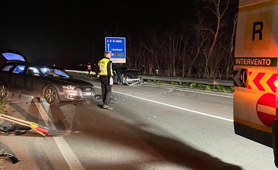 Impatto tra due vetture nel pomeriggio di oggi sulla strada statale 274 Gallipoli-Leuca, all’altezza dello svincolo epr Taviano. Tre le persone rimaste ferite nello scontro tra una Peugeot 308 guidata da un 74enne, e un’Audi A4 condotta da un 50enne che viaggiava insieme alla moglie. Il primo è stato trasportato all’ospedale “Francesco Ferrari” di Casarano, mentre gli altri due al “Sacro Cuore di Gesù” di Gallipoli. Fortunatamente i tre non hanno rimediato particolari conseguenze, sono stati trasferiti in ospedale con codice giallo. Si sono registrate code in entrambi i sensi di marcia. Sul posto, oltre ai sanitari del 118, sono intervenuti i vigili del fuoco. I rilievi sono stati affidati ai carabinieri di Racale.