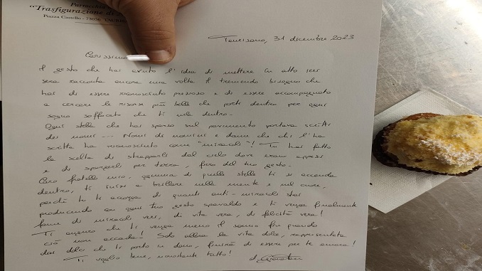 L’episodio è stato riportato da un post pubblicato sulla pagina facebook della parrocchia della Trasfigurazione. Nel post viene scritto anche che don Gionatan successivamente, ha suonato a casa di colui che viene definito “condottiero dell’armata Brancaleone” ma nessuno gli ha aperto. Don Gionatan aveva portato un dolce e una lettera che si conclude con il perdono del parroco e un “Ti voglio bene nonostante tutto”.