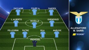 LAZIO (4-3-3): Provedel; Marusic, Patric, Gila, Pellegrini; Guendouzi, Rovella, Luis Alberto; Isaksen, Anderson, Zaccagni. A disposizione: Sepe, Mandas, Vecino, Kamada, Pedro, Romagnoli, Casale, Immobile, Hysaj, Basic, Lazzari, Cataldi, Fernandes. Allenatore: Maurizio Sarri