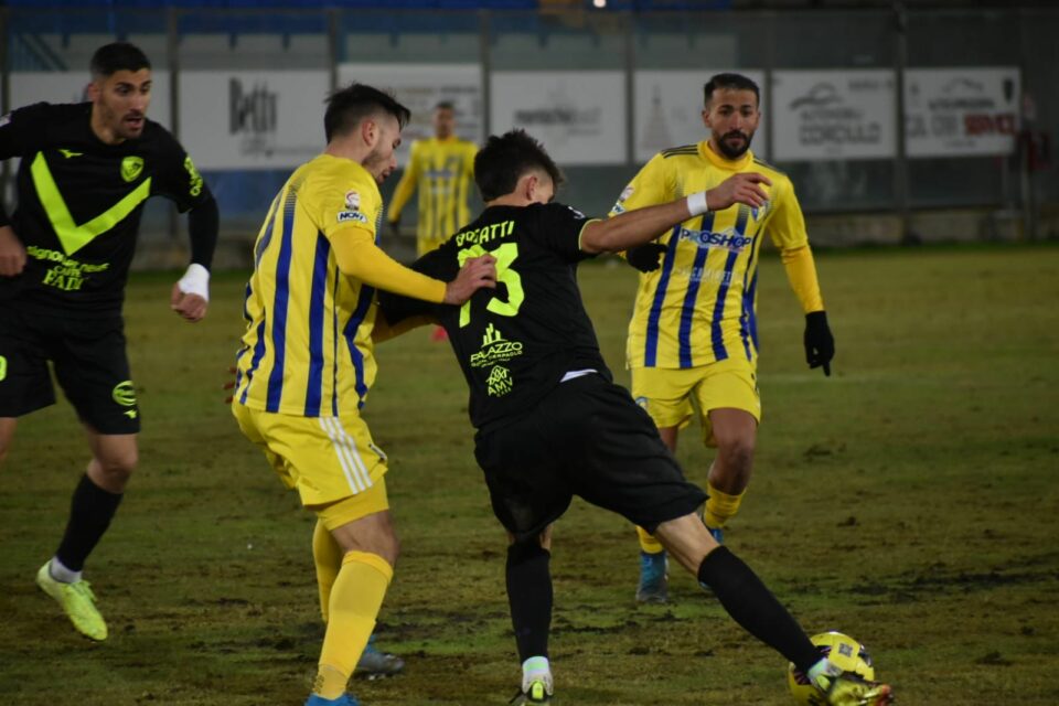 Nella ripresa una disattenzione biancazzurra avvia la ripartenza del Cerignola che viene concretizzata da Leonetti nella rete dell’1-0 al 51′.