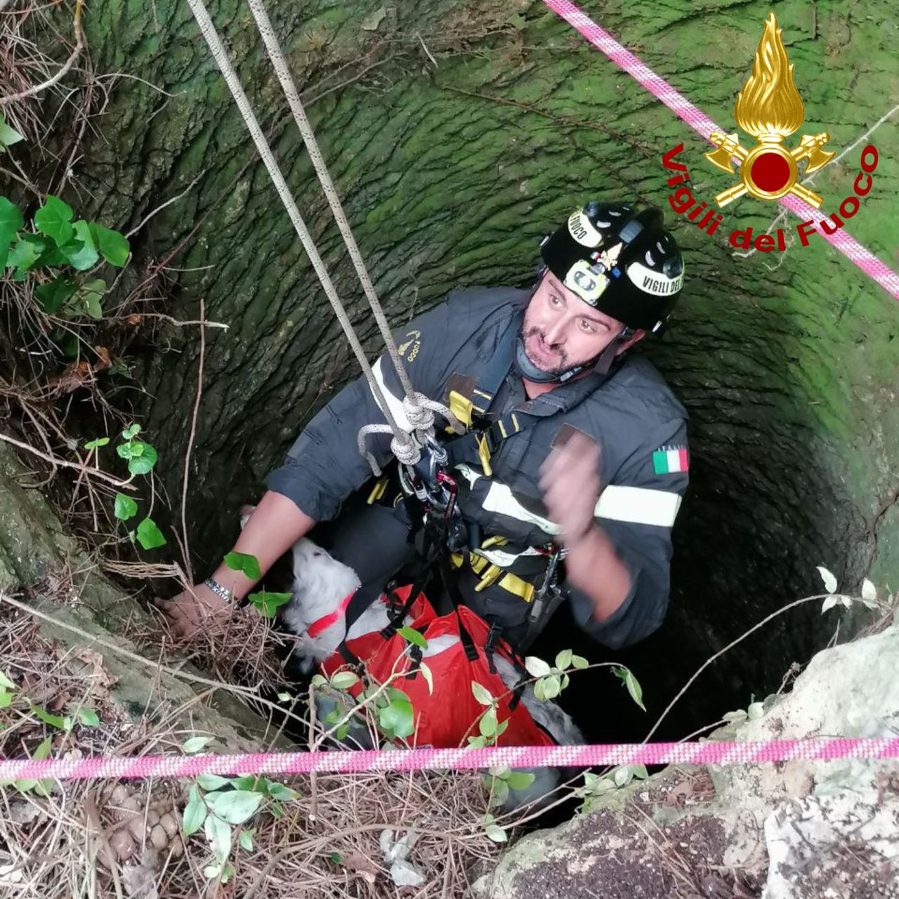 Precipita all’interno di un pozzo: salvato un cagnolino