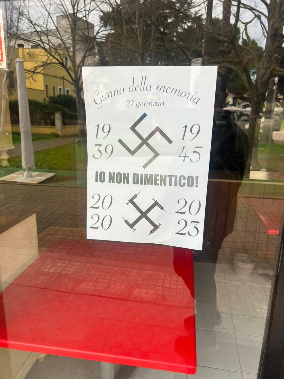 Ha suscitato non poche polemiche la locandina affissa su una vetrina di Casarano con raffigurate due svastiche divise da due date: 1939-1945, e 2020-2023, con al centro la frase “Io non dimentico!”. Il riferimento è alla giornata di oggi, 27 gennaio, in cui si celebrano le vittime della Shoah.