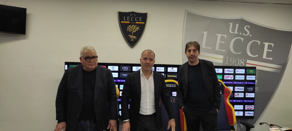 LECCE – Conferenza stampa del presidente del Lecce Saverio Sticchi Damiani, del direttore dell’area tecnica Pantaleo Corvino e del direttore sportivo Stefano Trinchera.