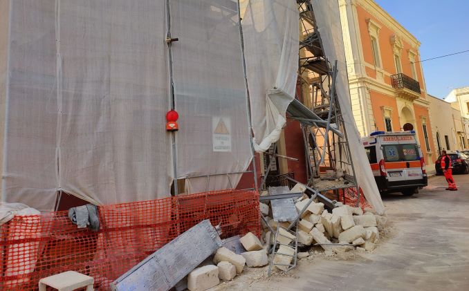 SQUINZANO – Crolla una porzione di solaio di un palazzo in ristrutturazione e tre operai rimangono feriti, uno di loro in modo grave.