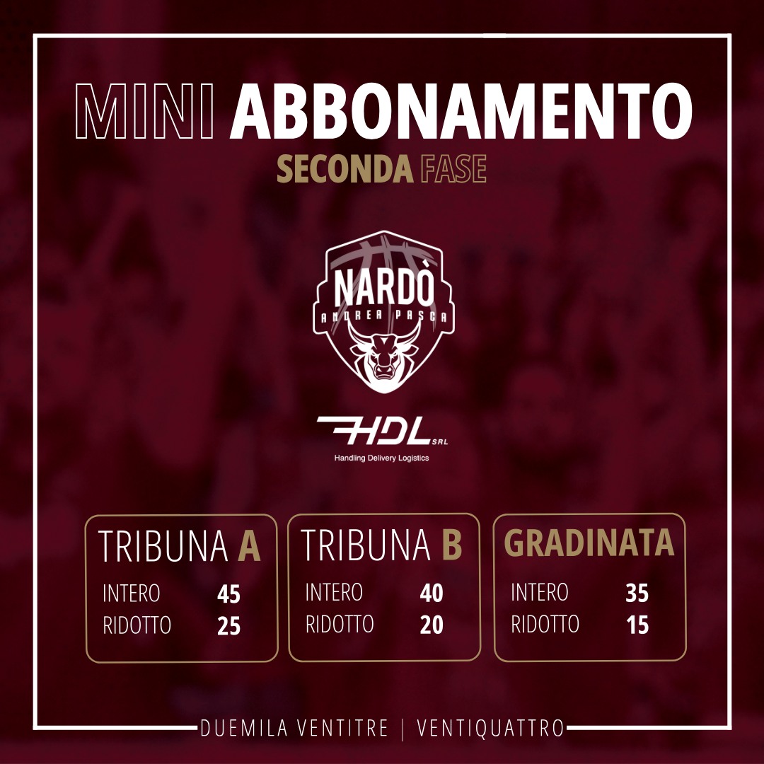 Le tessere possono essere acquistate presso la sede del Nardò Basket in via Volta 5 e nei punti vendita VivaTicket, la vendita terminerà sabato 10 febbraio alle ore 20 alla vigilia della gara che Nardò giocherà, domenica, al Pala San Giuseppe con il Latina, con palla a due alle ore 18.00.
