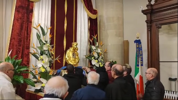 CUTROFIANO – Maria La comunità di Cutrofiano ha accolto l’eccezionale Peregrinatio della Insigne reliquia di sant’Antonio di Padova, accompagnata da due frati, direttamente dalla Basilica del Santo. Le reliquie hanno raggiunto la chiesa Santissima Maria delle Neve dove resteranno a disposizione dei fedeli fino a sabato sera. Le Reliquie che solitamente vengono portate nella “Peregrinatio” sono due e sono state estratte dalla Tomba di Sant’Antonio nella ricognizione del 1981. Sono reliquie “ex massa corporis”, sono esposte in due reliquiari: il più solenne ha la forma di un busto dorato del Santo che viene esposto alla venerazione pubblica dei fedeli. L’altro, più piccolo e manuale, viene normalmente collocato sull’altare e viene usato per le benedizioni o portato nelle visite in altri luoghi.