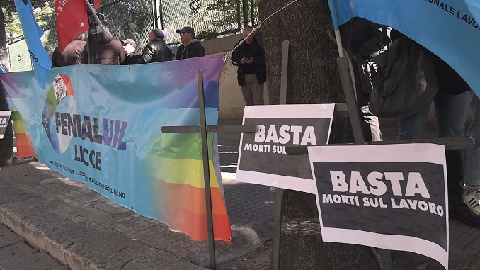 LECCE – Troppi infortuni e morti sul lavoro, accadimenti che cambiano la vita non solo dei lavoratori, ma anche delle loro famiglie, per questo bisogna investire sulla sicurezza, a ribadirlo i sindacati di Cgil e Uil che anche a Lecce hanno organizzato un sit-in di protesta davanti alla Prefettura in occasione dello sciopero nazionale. A tutto questo serve dire basta, dicono a gran voce uomini e donne che ogni mattina escono di casa per portare il pane e casa e hanno paura di non farvi ritorno o di subire un infortunio come quello accaduto a Franco nel 2015, mentre stava manovrando un mezzo su un cantiere il braccio gli è rimasto incastrato in un semirimorchio e questo gli è costato l’uso dell’arto. Prevenzione, formazione, più sicurezza, più controlli, questo serve in primis per evitare altre tragedie sui luoghi di lavoro.