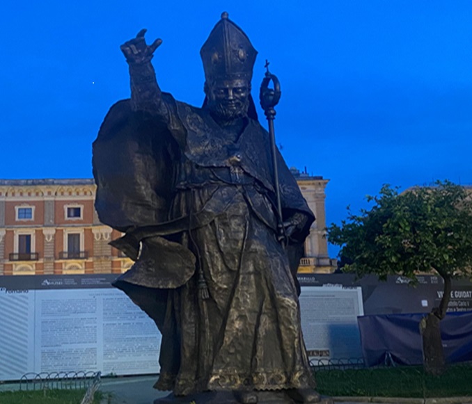 Ad accompagnare l’arrivo della statua in piazza, la banda “Nino Farì Città di Lecce”, presenti il sindaco Carlo Salvemini e tutta la giunta comunale, particolarmente emozionato anche l’arcivescovo Monsignor Michele Seccia.