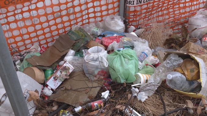 Carte, coperte, scarpe , spazzatura di ogni tipo, bottiglie vuote come cartolina ricordo del bivacco notturno e tra i rifiuti il lezzo di urina ed escrementi, e la carta utilizzata per pulirsi dopo aver usufruito di un servizio igienico improvvisato sui marciapiedi della zona. Non potendo usufruire dei bagni a pagamento all’interno della stazione.