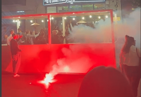 Poi i giallorossi hanno brindato stappando le bottiglie della “gioia”, intonando insieme i cori da tifo caldo.