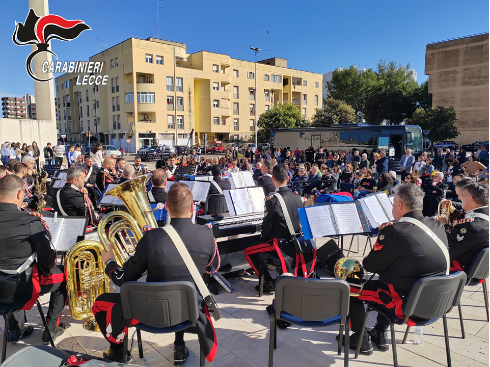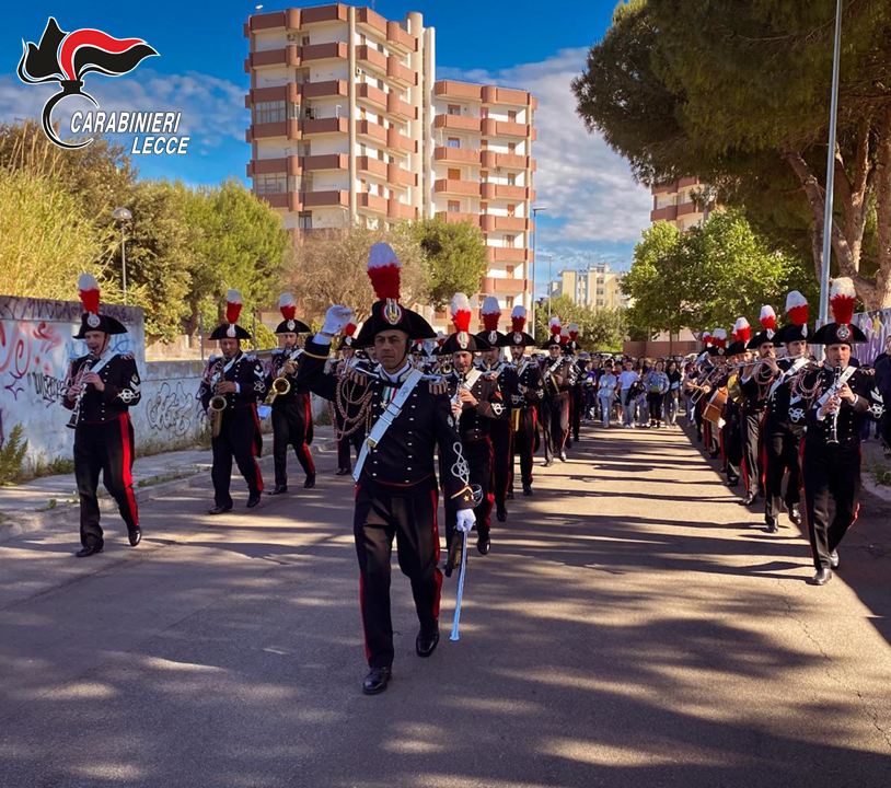 LECCE – La Fanfara del 10° Reggimento Carabinieri “Campania” di Napoli si è esibita nel quartiere 167 di Lecce, coinvolgendo cittadini e giovani alunni dell’Istituto Comprensivo Stomeo Zimbalo.