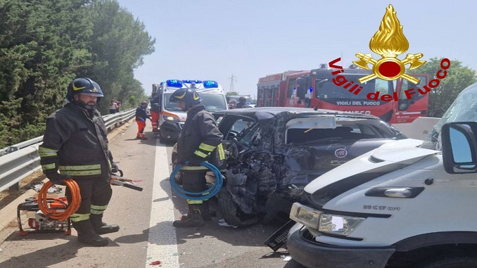 Violento scontro sulla S.S. 101 tra furgone e auto. Grave una donna