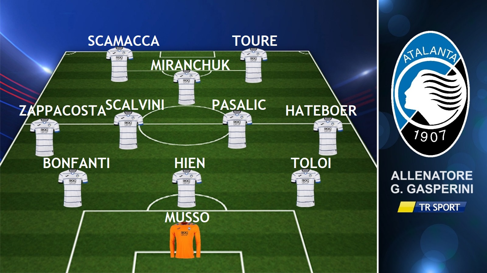 ATALANTA (3-4-1-2): Musso; Toloi, Hien, Bonfanti; Hateboer, Scalvini, Pasalic, Zappacosta; Miranchuk; Scamacca, Touré. All. Gasperini