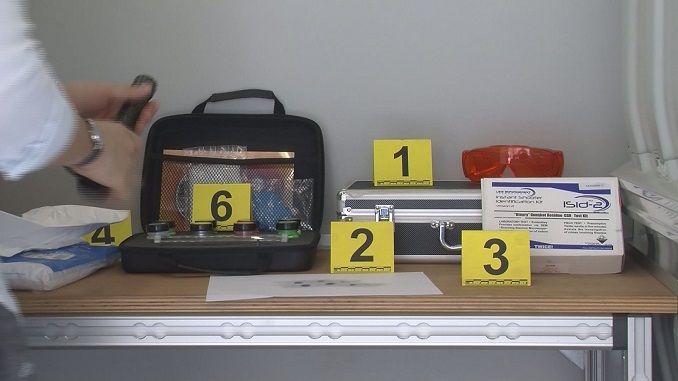 Nel corso della due giorni i partecipanti hanno lavorato utilizzando il luminor, le luci forensi, il rilevamento delle impronte digitali, e tutto il materiale utile per fotografare la scena del crimine.