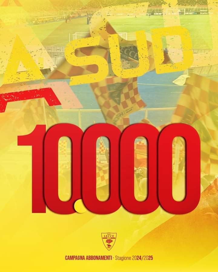 LECCE – La campagna abbonamenti “A Sud” del Lecce per la prossima stagione ha superato 10mila abbonamenti, proprio  a due giorni dal termine della fase di prelazione riservata ai vecchi abbonati, fase in cui non saranno sottoscritte nuove tessere o emessi abbonamenti con cambio posto.