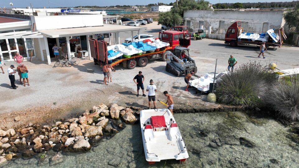 A Sant’Isidoro rimossi 15 pedalò, baia ora sgombra dalle imbarcazioni abusive. Maxi operazione di polizia marittima a contrasto dell’ormeggio abusivo di natanti nelle acque di balneazione della marina neretina. Ieri mattina, i militari dell’ufficio locale marittimo Torre Cesarea con la Polizia Locale del Comune di Nardò, gli operatori dell’Area Marina Protetta Porto Cesareo e dell’ufficio Ambiente del Comune di Nardò, hanno sequestrato e rimosso 15 pedalò ormeggiati a pochi metri da riva. Una ditta privata ha provveduto con uomini e mezzi a recuperare i natanti sequestrati e trasportarli presso un deposito del Comune. L’ormeggio abusivo di unità nautiche, com’è noto, si configura come occupazione abusiva di demanio e violazione alle ordinanze regionali e del compartimento marittimo sulla sicurezza balneare.