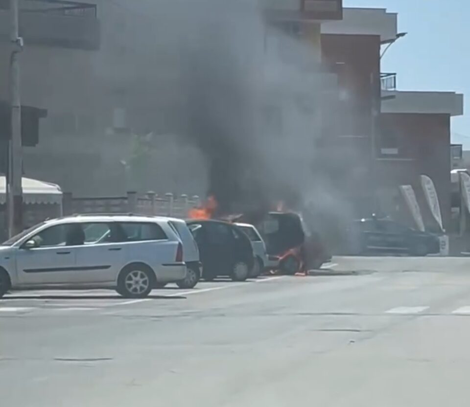 Un furgone Fiat Fiorino è stato avvolto dalle fiamme, danneggiando due automobili parcheggiate nelle vicinanze. Il rogo, scoppiato intorno alle 13:40 in via Torino, è partito dalla parte posteriore del veicolo.