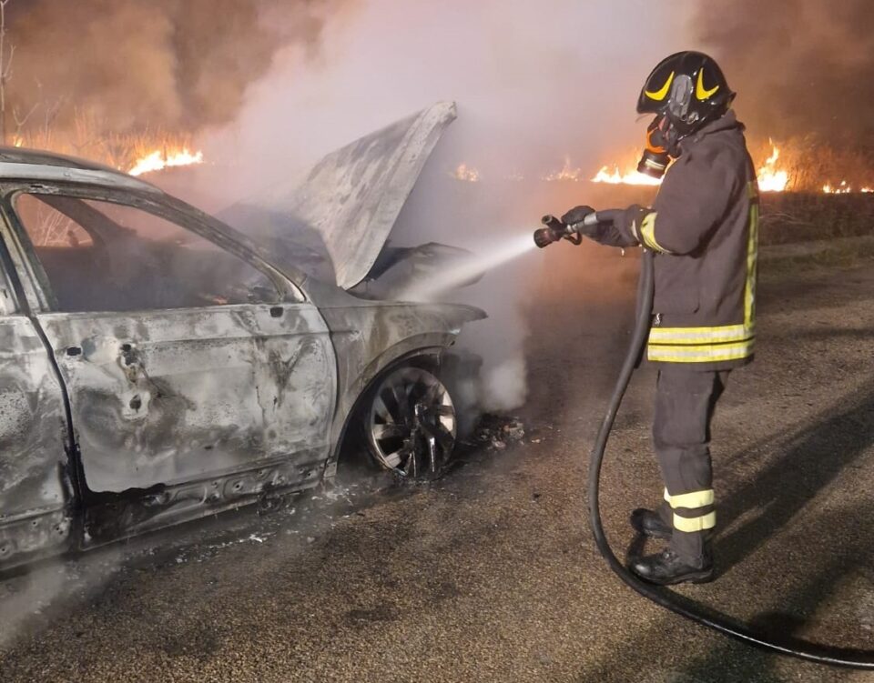 L’incendio si è propagato rapidamente, coinvolgendo anche parte dell’erba incolta vicina al veicolo. Le fiamme hanno completamente avvolto l’autovettura, minacciando di estendersi ad altre macchine parcheggiate nelle vicinanze.