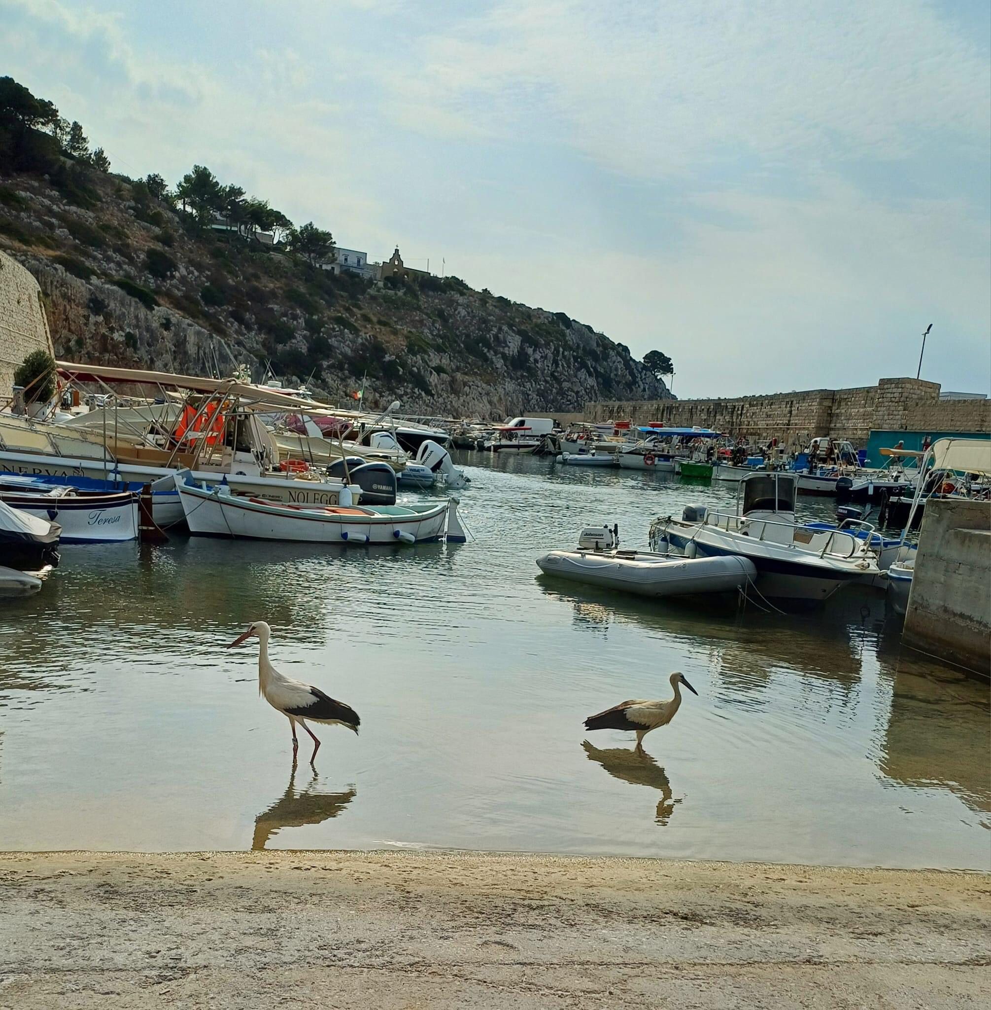 CASTRO –  Due insolite turiste sono state avvisate questa mattina allo scalo delle barche di Castro: eccole qui le due cicogne immortalate dai bagnanti mentre erano intente a passeggiare in riva al mare castrense.