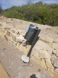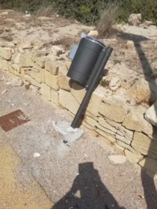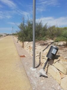 Litoranea Baia Verde al buio e con cestini per i rifiuti sradicati