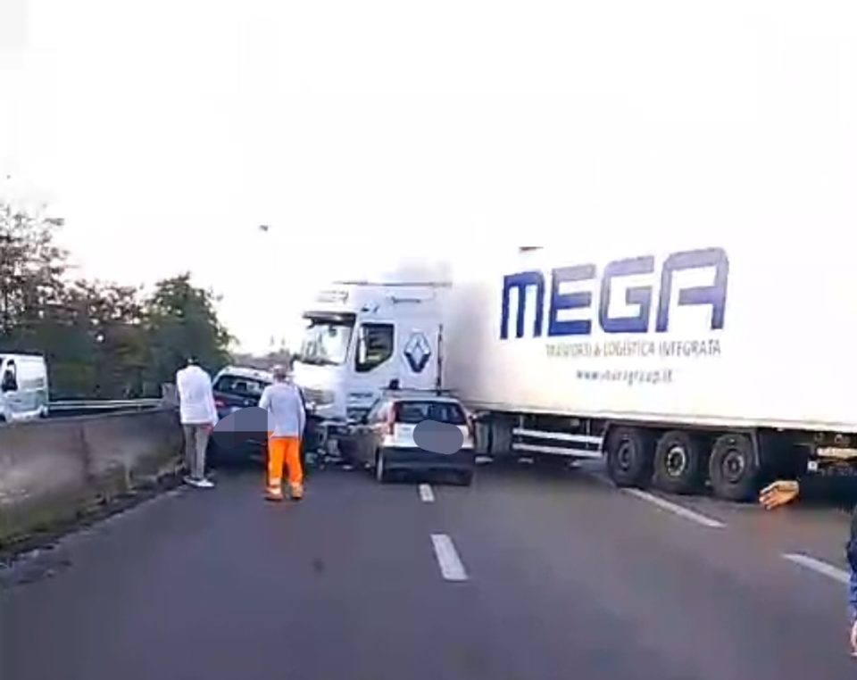 L’incidente si è verificato all’altezza della stazione di servizio LukOil, e ha coinvolto due auto, una vecchia Fiat Punto e una Ford, rimasta incastrata tra il guardrail e la parte anteriore del tir.
