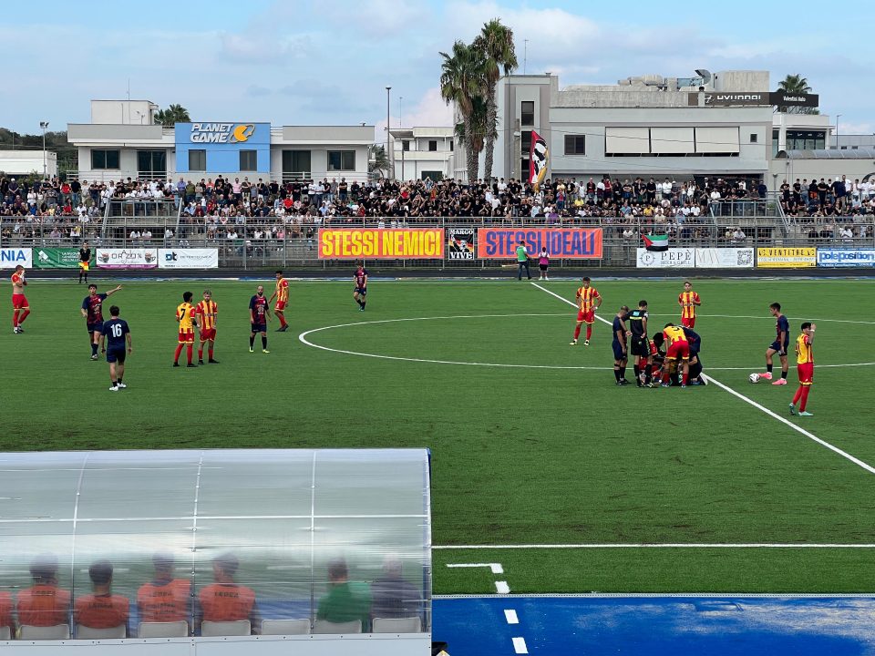 LA PARTITA, AGONISMO E … – Arbitra Matteo Specchia di Casarano. Partita combattuta sin dai primi minuti di gioco, padroni di casa subito pericolosi con Mancarella che spara alto sopra la traversa. Pronti via: rigore per il Maglie: Melono viene atterrato in area e Cato non sbaglia: 1-0. Il Tricase non demorde e dopo pochi minuti è subito 1-1. De Giorgi solo davanti a Moschella non sbaglia. Si continua a giocare e a combattere e poi gli ospiti a nemmeno dieci minuti dalla fine segnano il gol del vantaggio: 1-2. Segna Vatavu lasciato colpevolmente solo. Sul finire del primo tempo fuori Mancarella, dentro Romano. I giallorossi chiudono in attacco, ma vanno a riposo in svantaggio. Partono molto determinati i padroni di casa. Al 7 Tricase vicinissimo al gol con Palumbo: di poco fuori. Poi, ancora De Giorgi: 3-1 per gli ospiti. Al 68′ il Maglie accorcia è sigla il 3-2 con Melono. La squadra di Salvadore vuole pareggiare, ma gli ospiti tengono botta. Ed ecco servito il 3-3: gran gol di Fernandez al 75′. Pressing asfissiante dei padroni si casa che vogliono vincerla. Capitano Kaicedo e compagni ci provano fino alla fine. Dopo 5′ di recupero è 3-3. Un punto a testa e il Maglie si porta a cinque punti, dopo tre partite ed è imbattuto. Ed festa festa e che la festa continui.