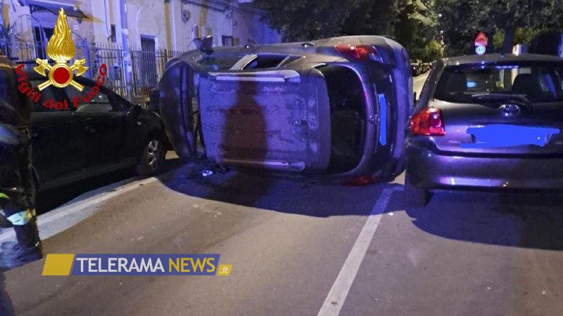 Una Opel Mokka, condotta da una donna dopo aver impattato contro un’autovettura parcheggiata, si è ribaltata sul lato sinistro, finendo la sua corsa contro un’altra vettura.