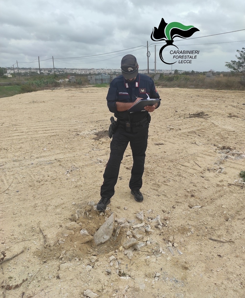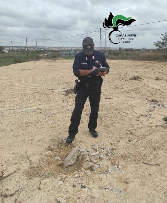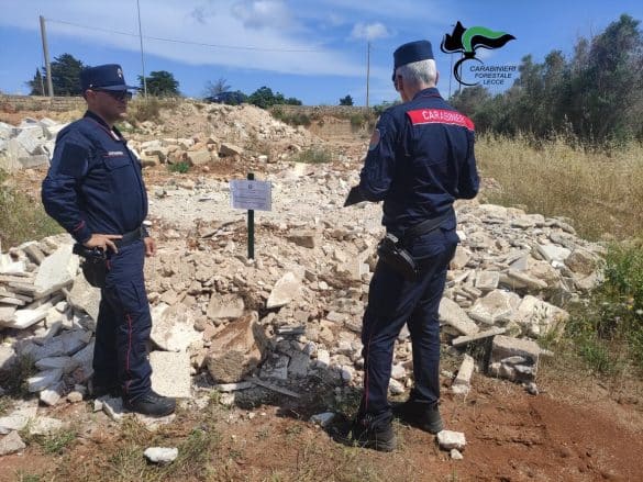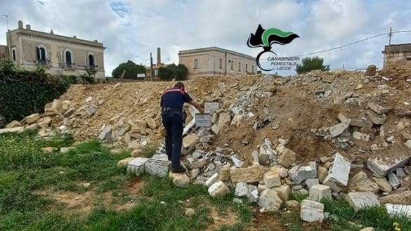 È quanto accaduto all’esito di un intervento dei carabinieri forestali del nucle di Gallipoli: all’interno di un fondo rustico hanno rinvenuto un’ imponente massa di materiale lapideo, in gran parte rifiuti da demolizioni edili, depositati e livellati in superficie, ricoprendo un’area di circa 850 metri quadri.