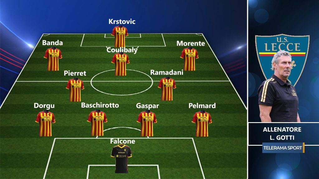 Luca Gotti deve fare a meno di Gallo, squalificato, e degli infortunati Bonifazi, Marchwinski, Berisha, Hasa, Burnete e Guilbert, quindi problemi sulle corsie esterne, dove, nel 4-2-3-1, dovrebbero agire Dorgu a sinistra e Pelmard a destra, con Baschirotto e Gaspar centrali. In porta, ovviamente, Falcone. A centrocampo potrebbero esserci Ramadani e Pierret; sulla trequarti potrebbe rivedersi dal primo minuto Banda sulla corsia sinistra, con Coulibaly centrale e Morente a destra, mentre in avanti Krstovic; Rebic potrebbe quindi partire dalla panchina. Sono tutte supposizioni che avranno risposte definitive solo con l’arrivo delle distinte ufficiali.