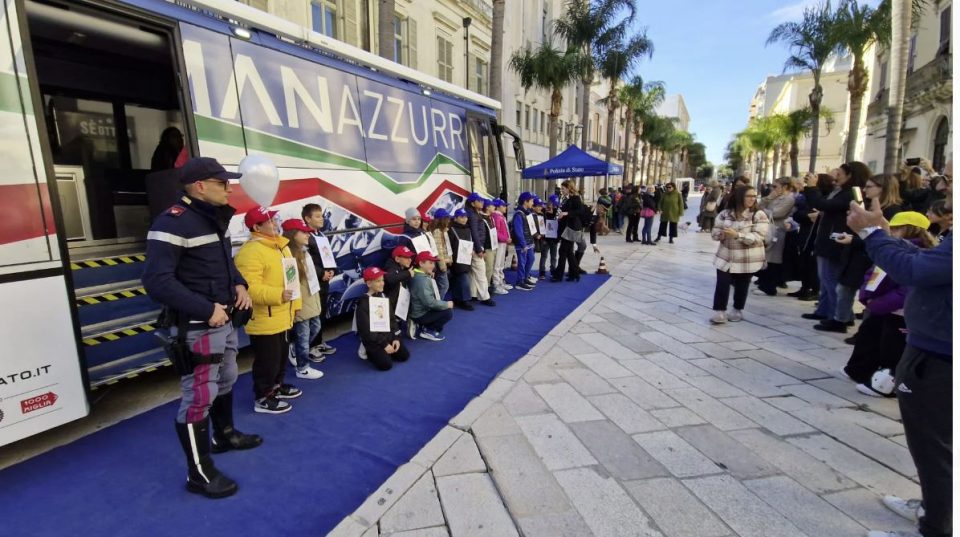 BRINDISI – Ha fatto tappa anche nella città di Brindisi, su iniziativa dell’Istituto comprensivo Centro-Tuturano, il “pullman azzurro” della Polizia Stradale. Un evento che rientra nell’ambito di un articolato programma per la Settimana nazionale delle vittime della strada e che vede coinvolta anche l’Associazione italiana familiari e vittime della strada.