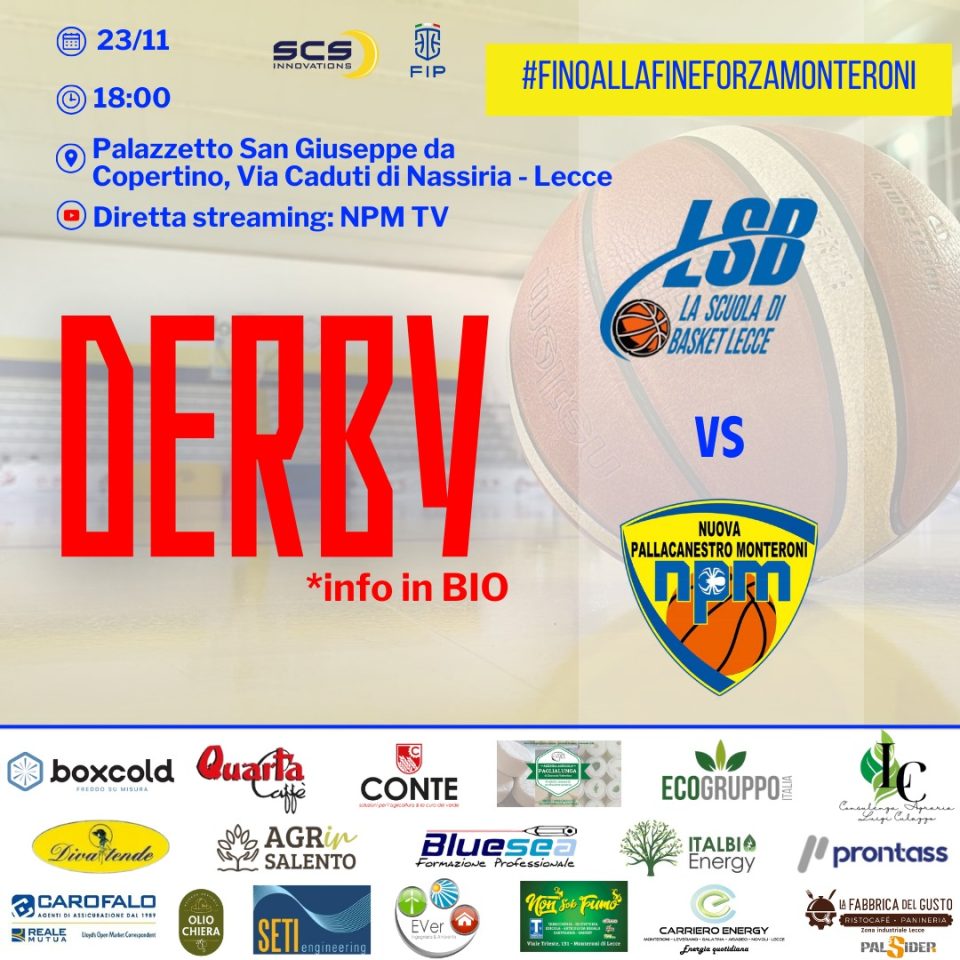 Domani, sabato 23 novembre, alle ore 18.00 presso il Pala San Giuseppe da Copertino, per gli amanti e appassionati del basket, si terrà il tanto atteso derby del Salento tra Nuova Pallacanestro Monteroni e LSB Lecce, per il campionato di serie C interregionale.