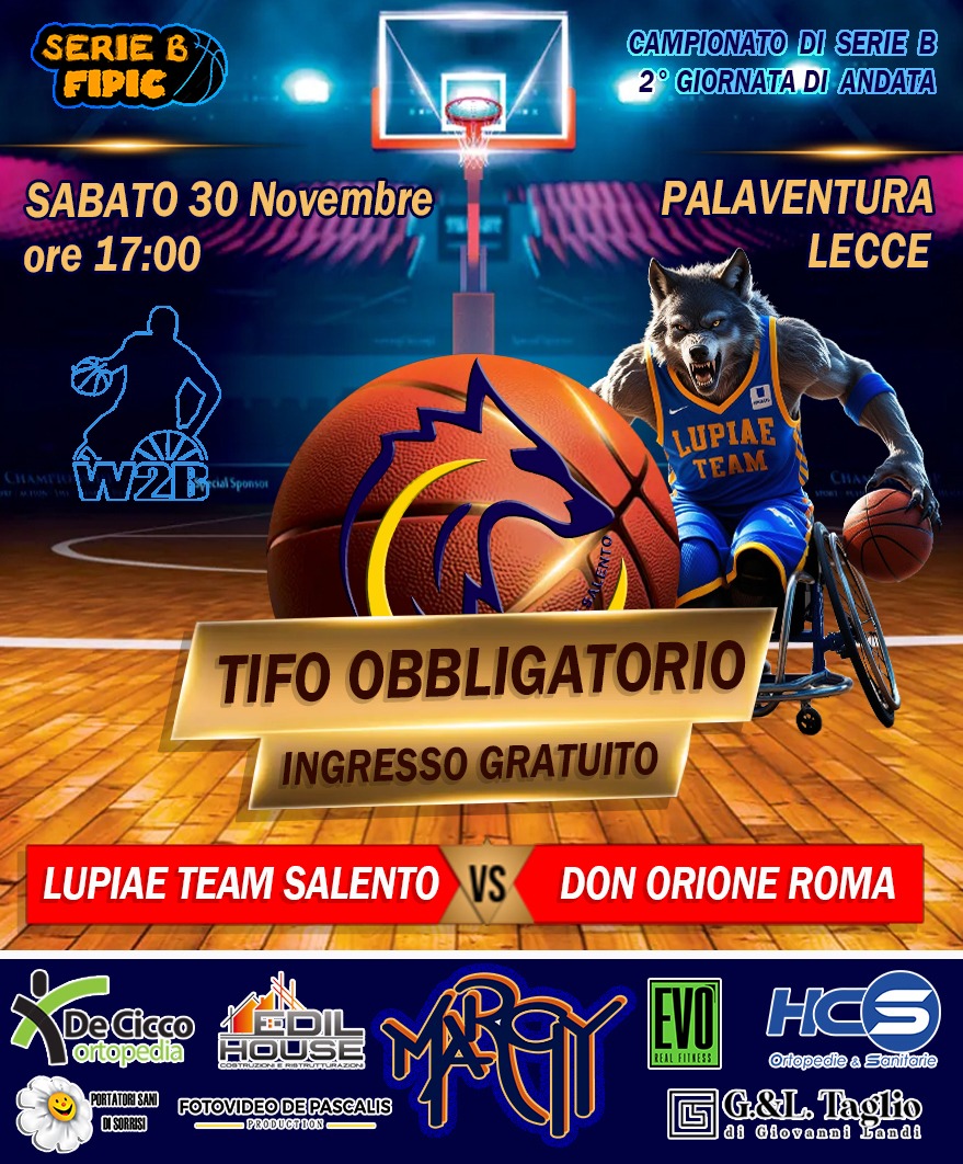 LECCE – Il 30 novembre sarà un sabato particolare per gli amanti del basket in carrozzina, alle ore 17.00, presso il Pala Ventura di Piazza Palio, la Lupiae Team Salento esordirà nel campionato nazionale di basket in carrozzina di Serie B affrontando l’ASD Don Orione.