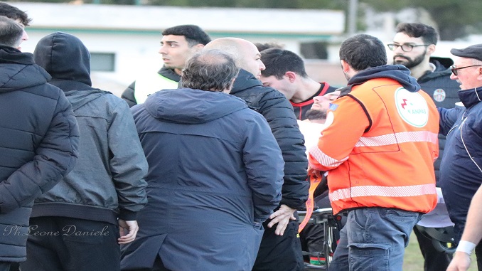 Giuseppe Camassa, calciatore del Grottaglie, ha fortunatamente ripreso i sensi poco dopo, è stato sottoposto ad un elettrocardiogramma e poi trasferito al “Fazzi” per altri accertamenti. I giocatori, scossi, hanno preferito non tornare in campo.