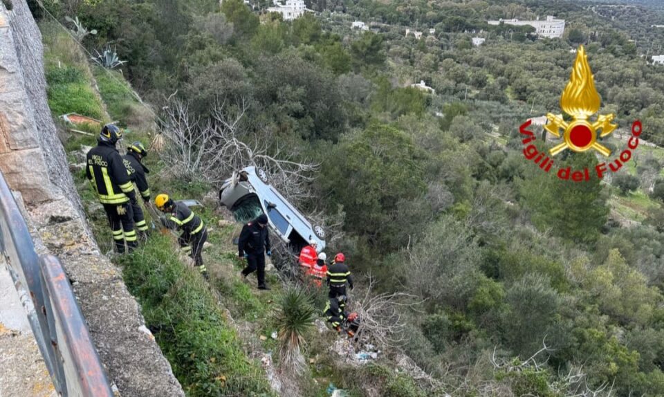 OSTUNI – Ha perso il controllo della sua auto ed è finito in dirupo. A recuperarlo, con qualche difficoltà, sono stati i Vigili del Fuoco intervenuti con un’autoscala e una squadra di colleghi del nucleo speleo-alpino-fluviale. L’incidente è avvenuto nel primo pomeriggio di oggi vicino a Ostuni, nel Brindisino. Il conducente, per cause da accertare, ha sfondato le barriere di sicurezza che delimitano la strada facendo un volo di qualche metro tra vegetazione e rocce.  I pompieri lo hanno estratto dalle lamiere dell’auto e sistemato su un verricello per poi riportarlo sul piano stradale e affidarlo al personale sanitario del 118. L’uomo è ferito ma non in pericolo di vita. Sul posto sono intervenuti anche i carabinieri che indagano su quanto accaduto.