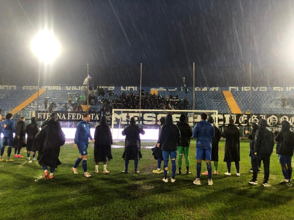 BRINDISI – La gara tra Brindisi e Fidelis Andria, del Girone H della Serie D, in programma allo stadio “Franco Fanuzzi”, è stata rinviata a data da destinarsi a causa dell’impraticabilità del terreno di gioco, dovuta alla pioggia battente che ha colpito la città di Brindisi. La decisione finale è stata presa dall’arbitro Giorgio D’Agnillo, della sezione di Vasto, dopo i necessari sopralluoghi.