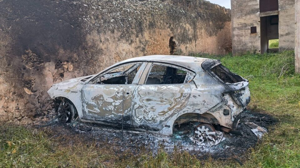 Trepuzzi, auto incendiata ritrovata in campagna: si indaga