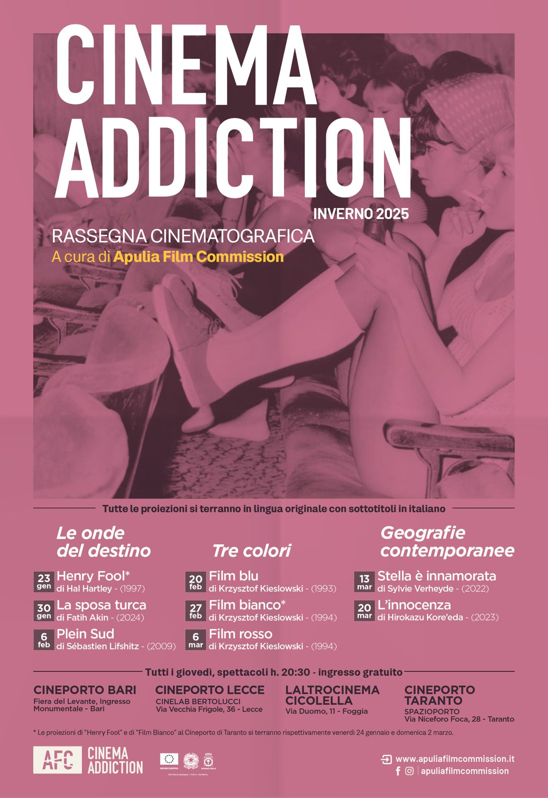 Vi ricordiamo che le proiezioni gratuite in programma, ad ogni visione accompagnate dall’introduzione e l’analisi di un critico cinematografico, saranno ogni Giovedì sera alle 20:30 ed in contemporanea, presso: i cineporti di Bari e Lecce, lo spazioporto di Taranto e Laltrocinema Cicolella di Foggia.