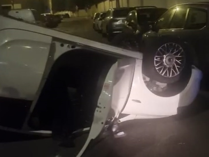 Auto si ribalta nella notte: coinvolte quattro vetture in sosta