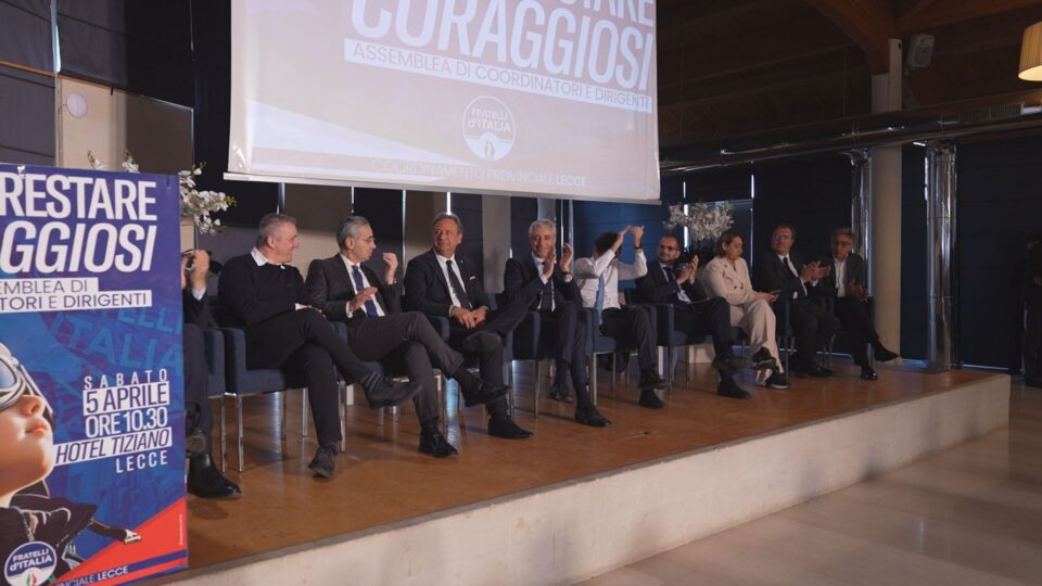 LECCE – Una lunga stagione congressuale che ha portato al rinnovo dei coordinamenti dei circoli cittadini della provincia di Lecce. Così il coordinamento provinciale di Fratelli d’Italia ha riunito coordinatori e dirigenti nella sala congressi dell’Hotel Tiziano di Lecce alla presenza dei vertici del partito guidato da Giorgia Meloni.