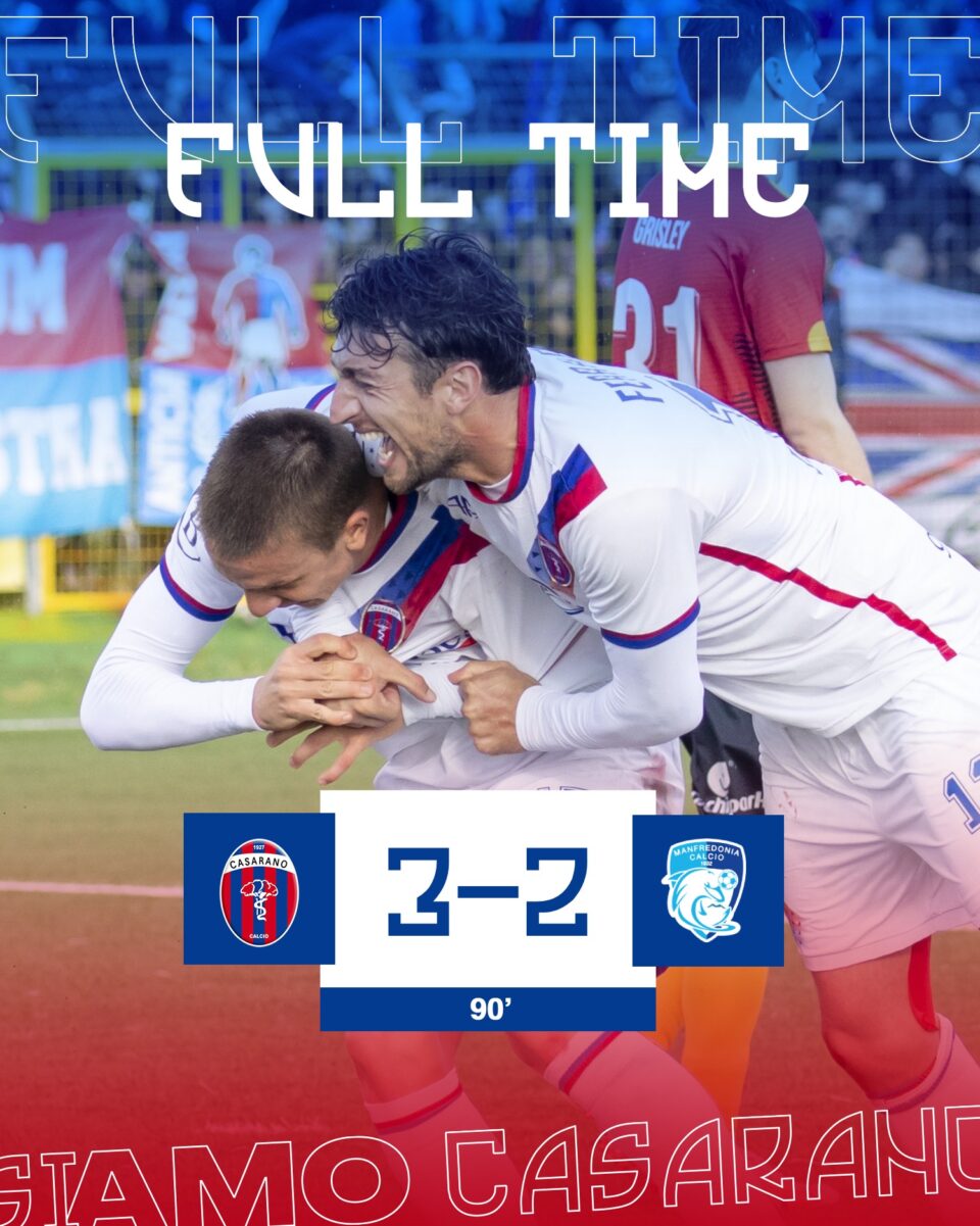 Il tris arriva su rigore: al 7’ della ripresa Loiodice trasforma con freddezza, firmando un 3-0 che sa di sentenza. Ma il calcio è anche imprevedibilità e adrenalina. E quando il Casarano rallenta – stanco, forse, dopo tanta bellezza – il vento cambia. De Luca accorcia per il Manfredonia al 24’ e al 42’ Puzirevskis mette i brividi segnando il 3-2. Termina così, il Manfredonia vende cara la pelle.