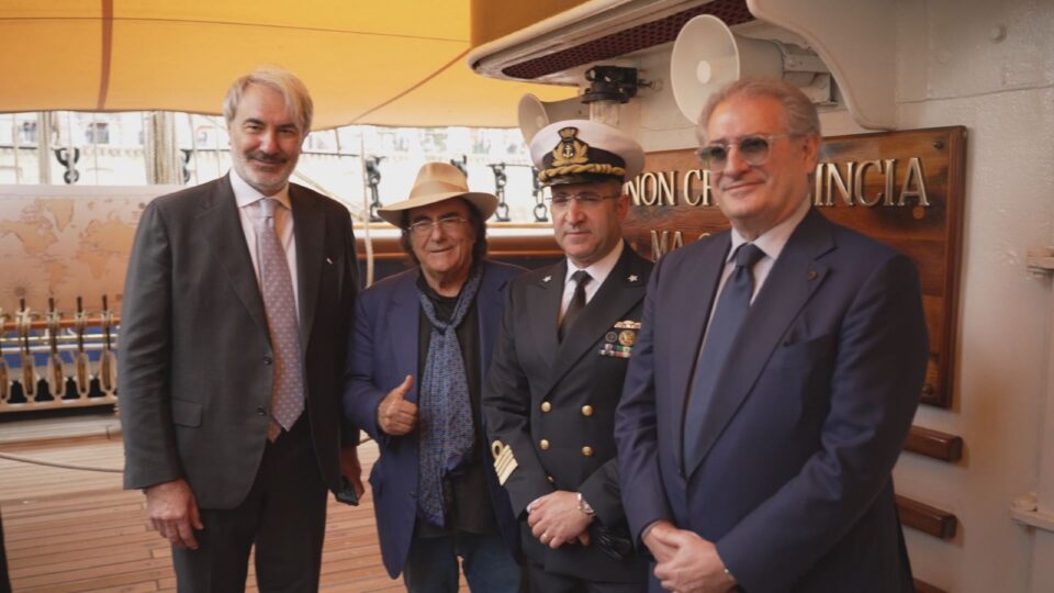 Al Bano è stato accolto al Villaggio IN Italia allestito al Castello Aragonese, dal Commissario Straordinario per i Giochi del Mediterraneo 2026 Massimo Ferrarese, da Luca Andreoli Amministratore Delegato di Difesa Servizi, la società in house del Ministero della Difesa che realizza e supporta tutte le fasi dell’iniziativa. A bordo della Vespucci il cantante ha incontrato il Capitano di Vascello Giuseppe Lai, Comandante della Nave Amerigo Vespucci.