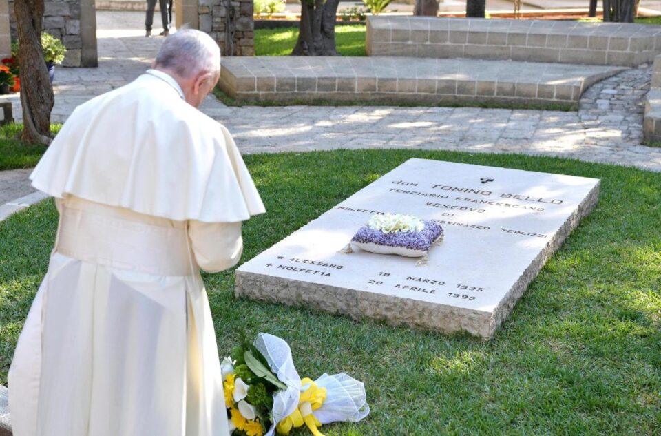 Il Papa si è recato in Salento per rendere omaggio a don Tonino Bello, vescovo di Molfetta e figura simbolo della pace e della giustizia sociale. Ad Alessano ha pregato sulla tomba del vescovo e ha incontrato i fedeli, mentre a Molfetta ha celebrato la Messa, ricordando l’impegno di don Tonino per una Chiesa povera e vicina agli ultimi.