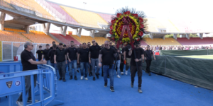 Poco prima delle 16 l’ingresso degli Ultrà. Tantissimi. In corteo hanno portato una corona di fiori e appeso uno striscione sotto la Curva: “Graziano, la Nord ti saluta”. Presenti pure altri gruppi organizzati come i Wolves Group della Curva Sud. Tanti i fiori portati o fatti arrivare al Via del Mare. Anche da parte di Mister Liverani e del suo staff. E ancora da parte di Mister De Zerbi.