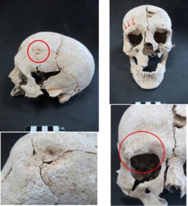 È in questo contesto che gli archeologi, guidati dal professor Francesco Meo dell’Università del Salento, hanno rinvenuto una palla di catapulta ancora sul posto, accanto al corpo senza vita di un uomo. Il suo scheletro, trovato steso sul pavimento di un tempio, presenta fratture multiple e una ferita compatibile con un colpo di proiettile in piombo usato durante gli assedi.