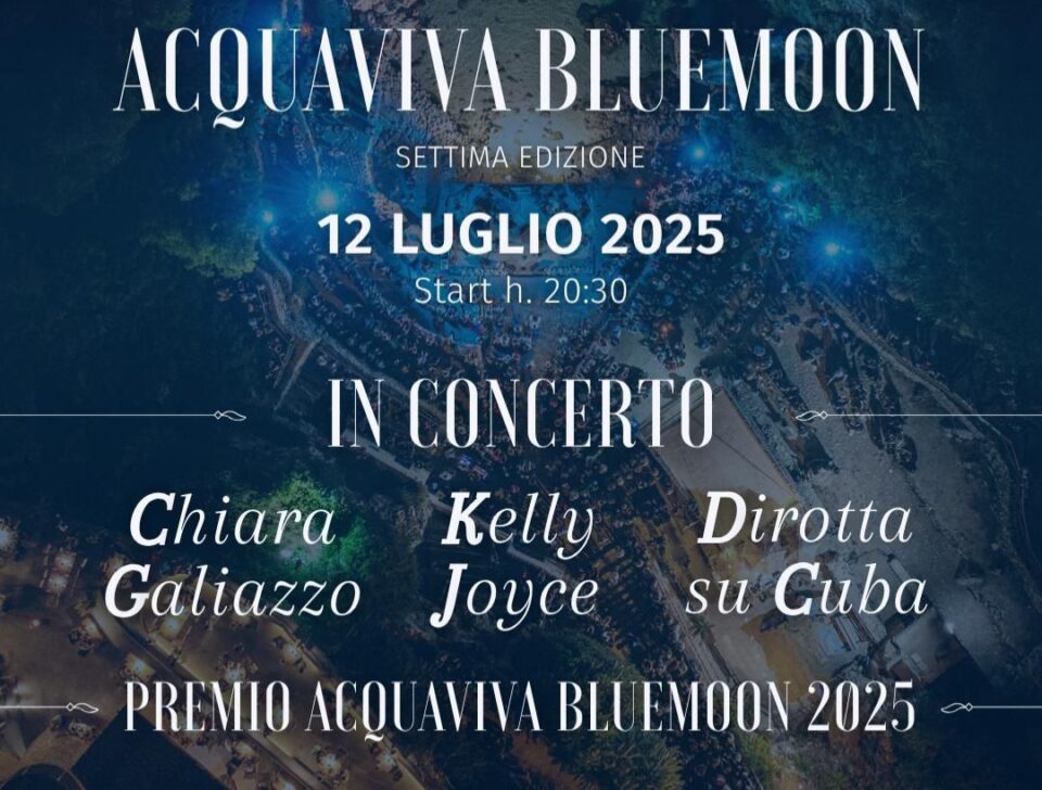 L’invito è a non mancare: 12 luglio 2025, ore 20:30 – Acquaviva BlueMoon, Marina di Marittima. Un appuntamento da segnare in agenda, per lasciarsi trasportare dalla magia di una notte che promette di restare nel cuore.