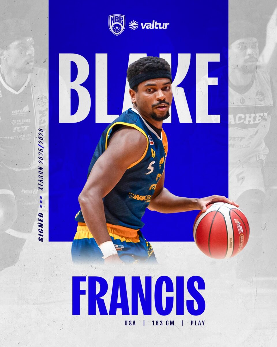 BRINDISI – La Valtur Brindisi ha ingaggiato Blake Francis, playmaker americano, con un contratto biennale e uscite bilaterali dopo il primo anno. Nell’ultima stagione ha giocato a Vigevano in Serie A2 segnando 27.7 punti di media. Ha esordito proprio contro Brindisi il 13 aprile 2025 con 21 punti. In carriera ha giocato in NCAA (Richmond), NBA G League (Westchester Knicks, Capital City Go-Go, Cleveland Charge), Canada (Montreal e Newfoundland) e in Europa (Germania a Jena e Finlandia al Kouvot Kuvola, dove è stato il secondo miglior realizzatore del campionato con 23.5 punti). Si è fatto notare in Italia per il suo talento realizzativo e la leadership dimostrata.