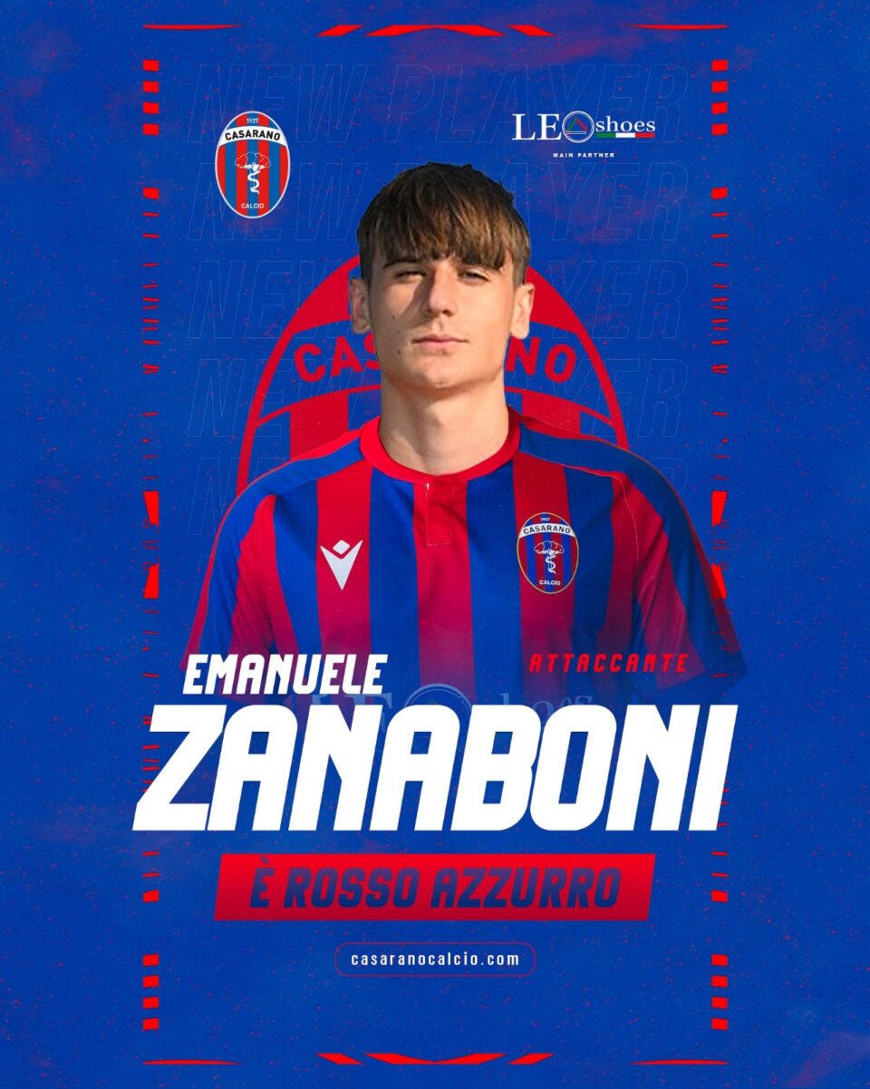 Il Casarano Calcio ha comunicato di aver acquisito l’attaccante Emanuele Zanaboni, classe 2005. Nato a Milano, è cresciuto nelle giovanili della Pro Patria, con cui ha esordito tra i professionisti nel settembre 2023. Successivamente si è trasferito al Bari, dove ha segnato 7 gol in 12 presenze nel campionato Primavera 2, venendo poi aggregato alla Prima Squadra in Serie B. Nella scorsa stagione ha giocato nel Monza Primavera, realizzando 13 reti in 37 gare. Zanaboni è già a disposizione di mister Di Bari nel ritiro di Cascia.